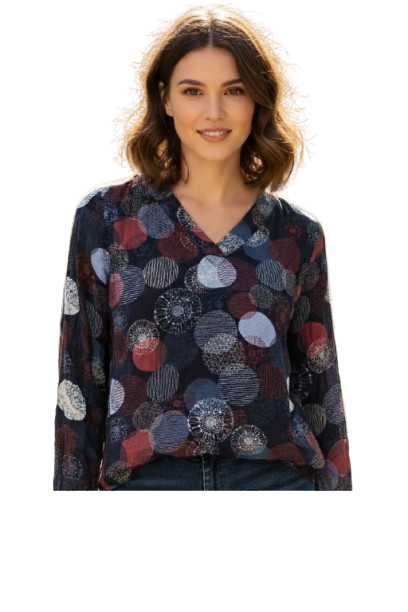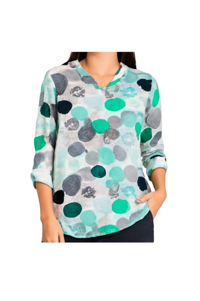 - Flattering round neckline : The top has a flattering round neckline with a v-neck detail and a slightly rounded hem for a relaxed look.