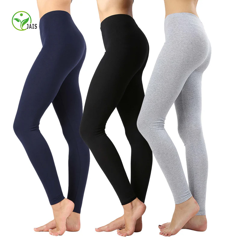 Pack of 3 pcs Women Basic Solid Color Cotton Full Length Leggings